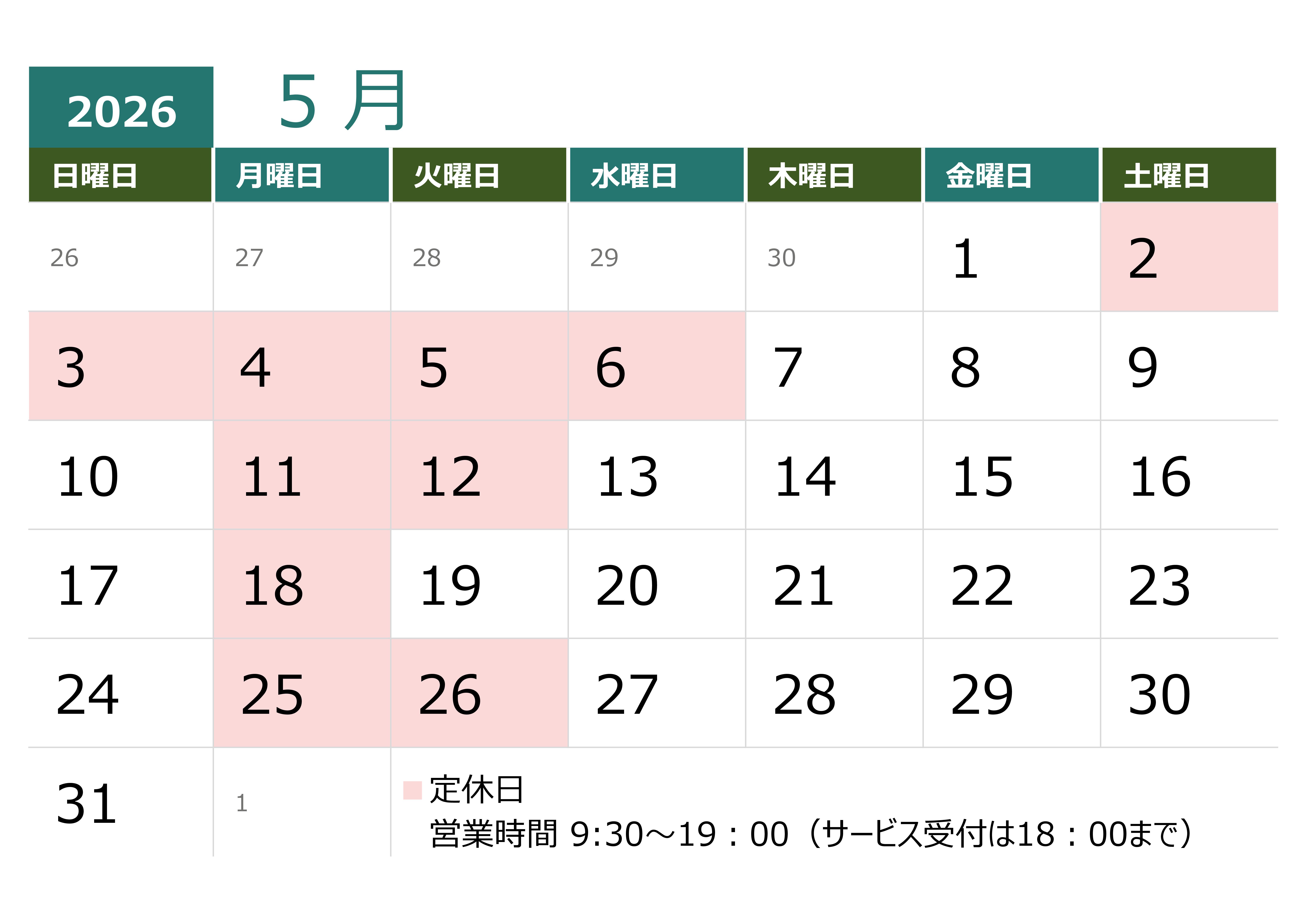営業日カレンダー